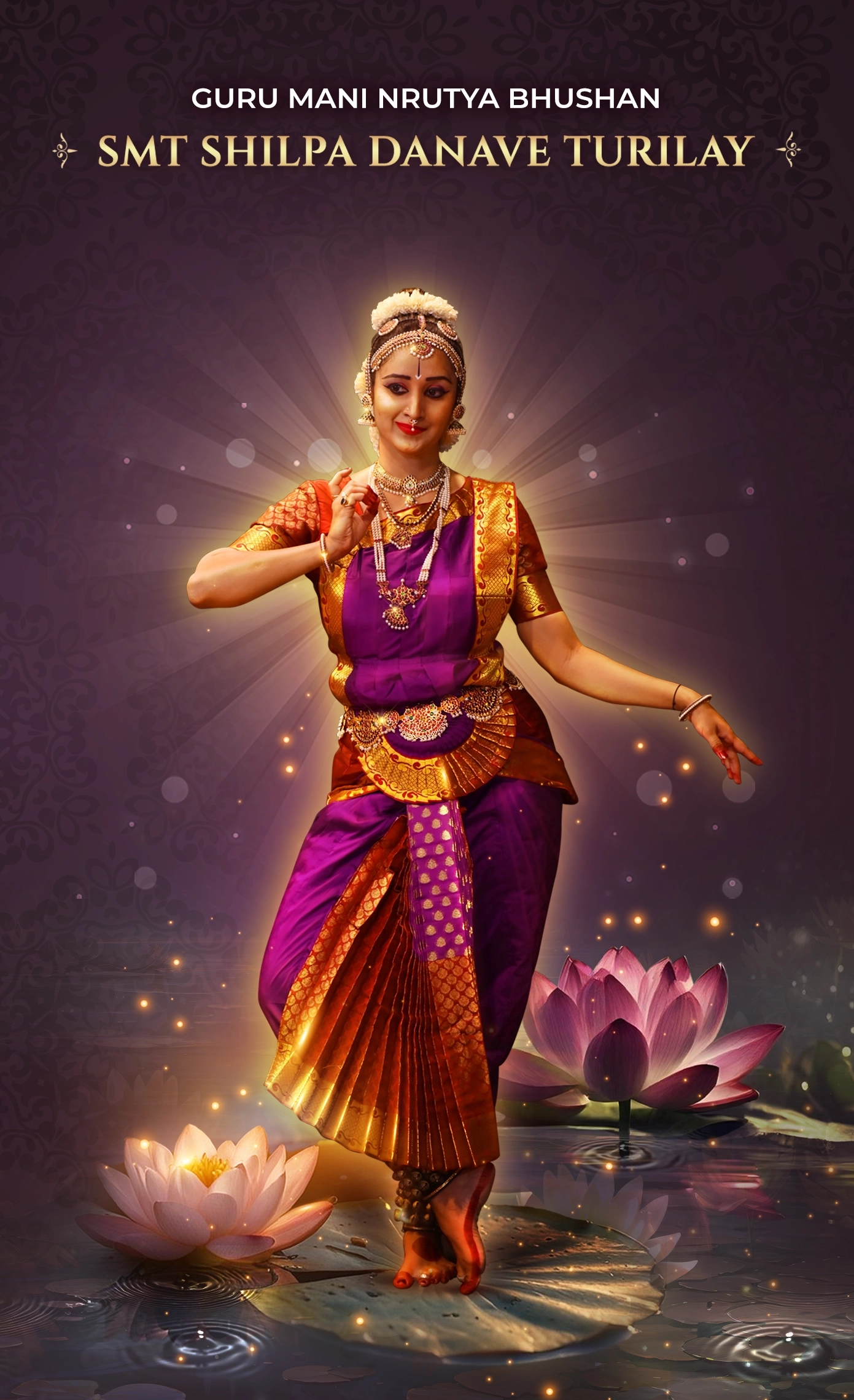 Shilpa Danave Turilay's journey in the world of dance began at a young age of 6, and her passion and dedication led her to become an alumna of the renowned institution "Kalakshetra" in Chennai. There, she received rigorous training in Bharatnatyam from esteemed masters such as Smt. Vasundhara Thomas, Shri Arun Shankar sir, Smt. Ganga Thambi, Shri Surya Narayan Murty sir, Shri Mohan sir, and many more. This strong foundation and exposure to exceptional mentors shaped her into the dancer and visionary she is today.